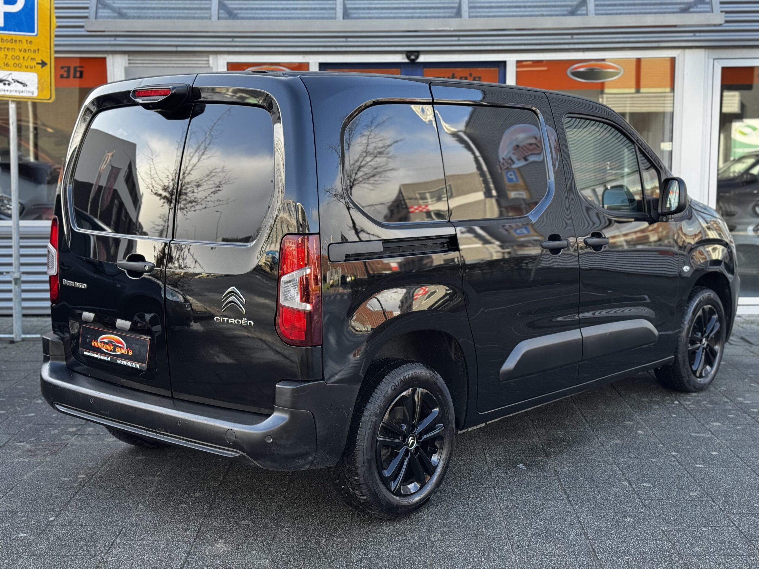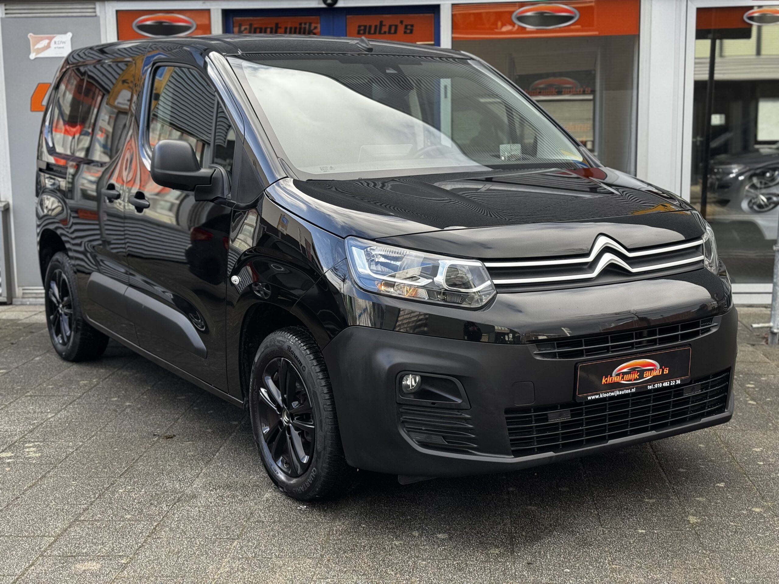 Zwarte Berlingo met alle belangrijke opties zoals Navi, Cruise + Climate Control, Camera, Zwarte LM Velgen, PDC, CarPlay, Zijschuifdeur, ook voor de particulier BPM en BTW Vrij!!, …