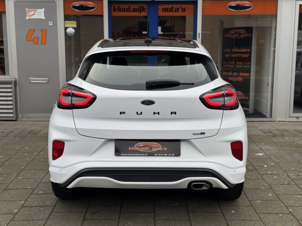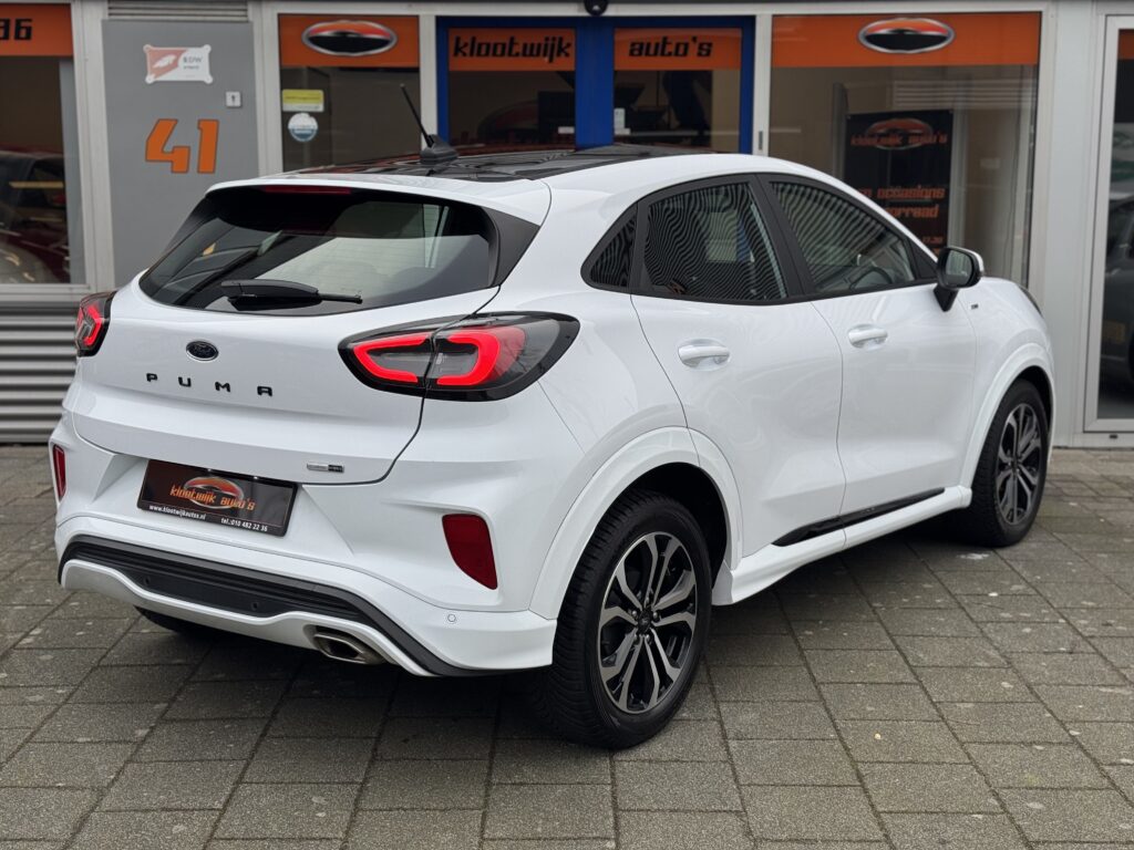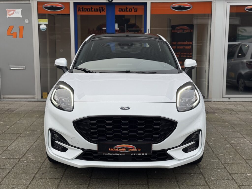 Dealer onderhouden Puma ST-Line X met Vitrual Dash, Full map Navi, Rijhulpsystemen Adaptive Cruise, Rijbaan Assistentie, Verkeersbord herkenning, Stoel + Stuurverwarming, Zwarte Hemel, Instelbaar Sportonderstel, 1e Eigenaar, Full led Verlichting, LM Velgen, Spoilerpakket in kleur, Keyless, Carplay, Bluetooth, Multimedia, Boekjes aanwezig, …